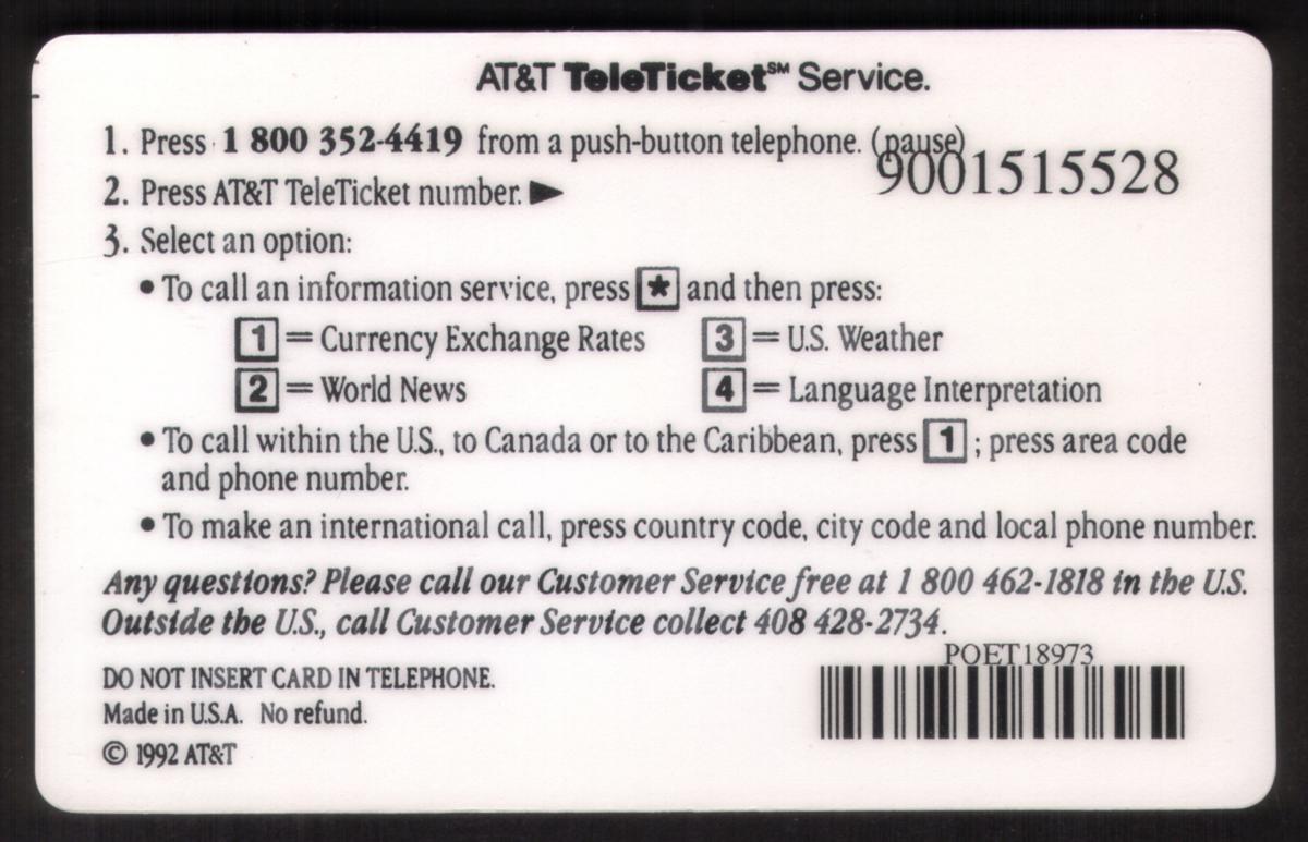 Since we have the world's largest inventory of USA phonecards for collectors, you will not necessarily receive the identical serial/batch/PIN number that we have scanned/pictured.