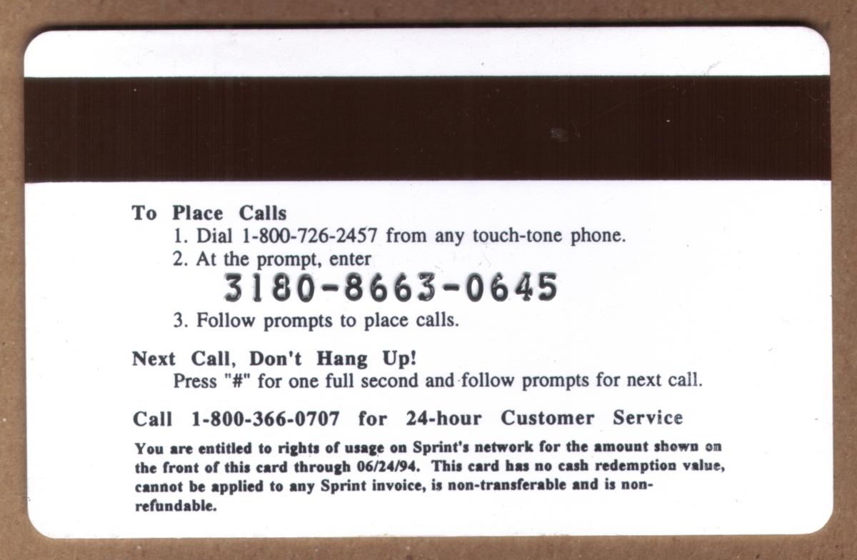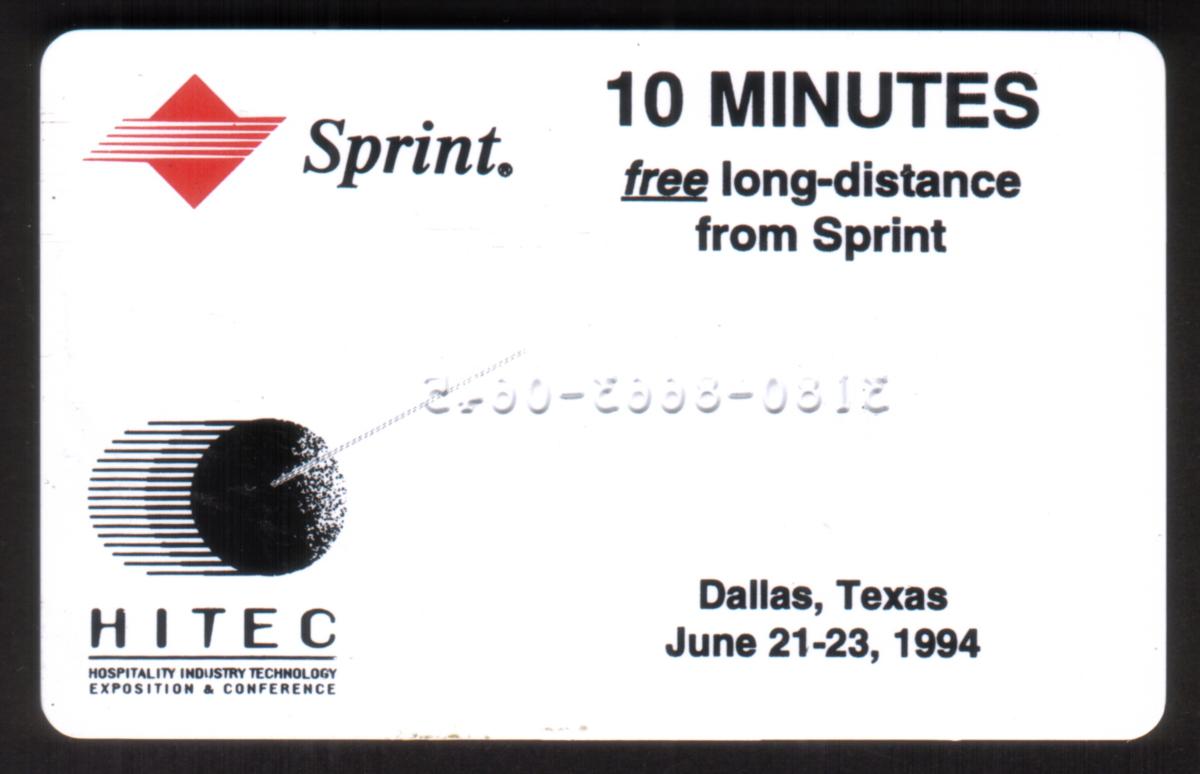 This promotional phone card was used by Sprint for this specific technology industry event, combining telecommunications and hospitality sectors. It serves both as a functional calling card and a commemorative item from the HITEC conference.