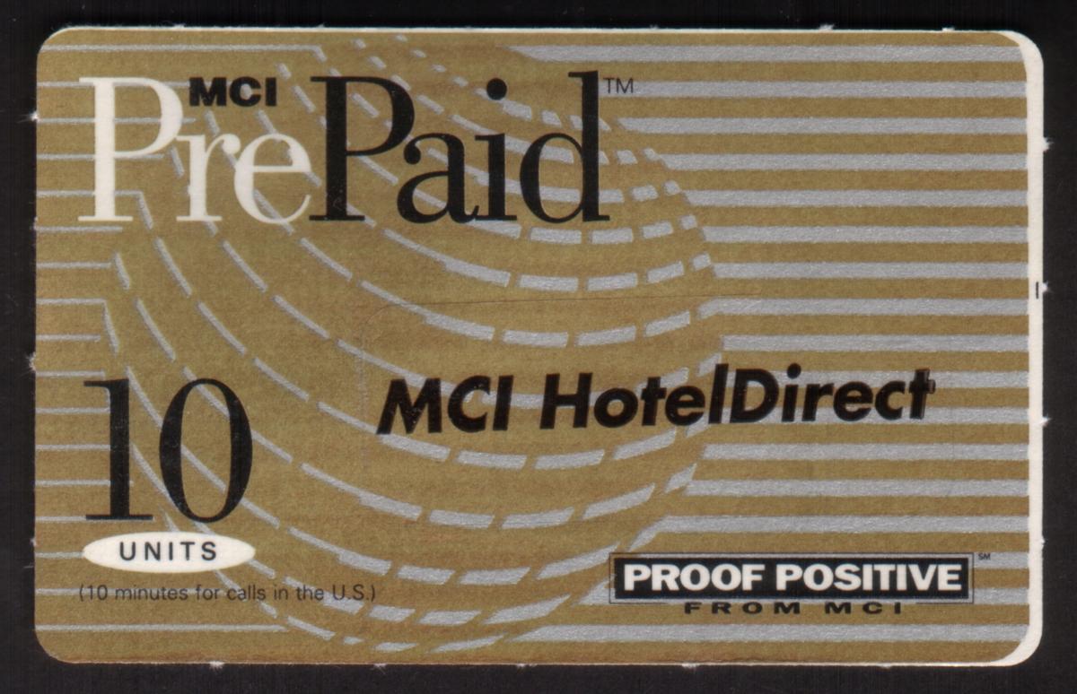 Overall, the card presents a clean and corporate look consistent with MCI’s branding during the early 1990s. It is a tangible representation of prepaid telecommunications service offered by MCI, designed specifically for hotel guests or related promotional uses within MCI’s network.