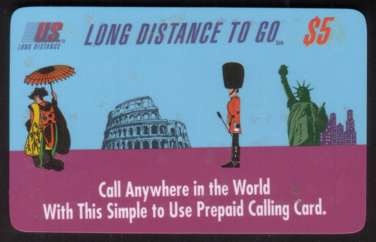 This USLD Communications phone card presents a global theme by combining well-known cultural and architectural symbols, making it both functional and collectible for users seeking international calling options.