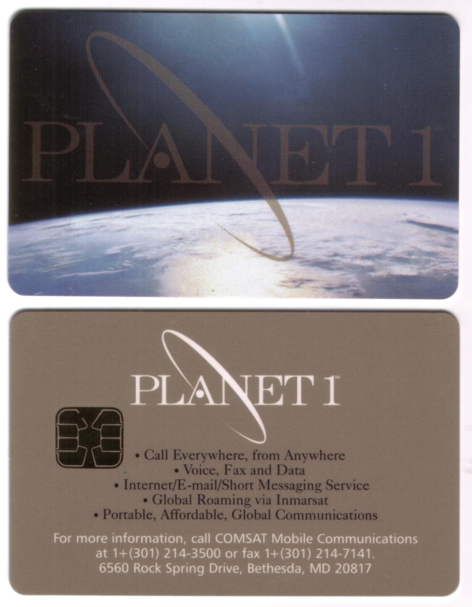 The card includes a "Dummy Chip" feature which means it is not enabled for actual telecommunication use but serves a collectible purpose. The emphasis is on the space and Earth imagery combined with corporate branding from WorldCom and COMSAT Mobile Communications. The card’s sleek, modern design appeals to collectors interested in technology, telecommunications, and space-related themes.