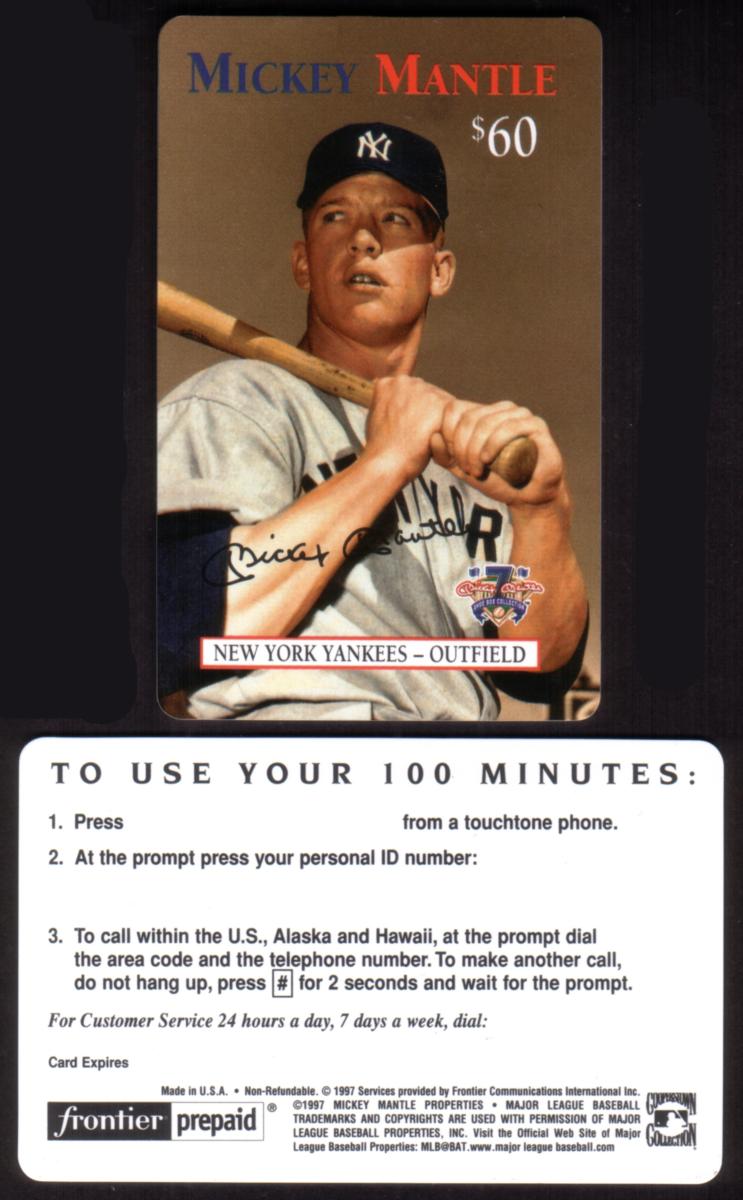 This collectible card is a well-preserved example celebrating Mickey Mantle’s contribution to Major League Baseball, especially with the New York Yankees. The presentation is clean and professional, appealing to fans of baseball history and collectors of Americana related items. The card’s official markings and association with Frontier Communications add to its collectible worth.