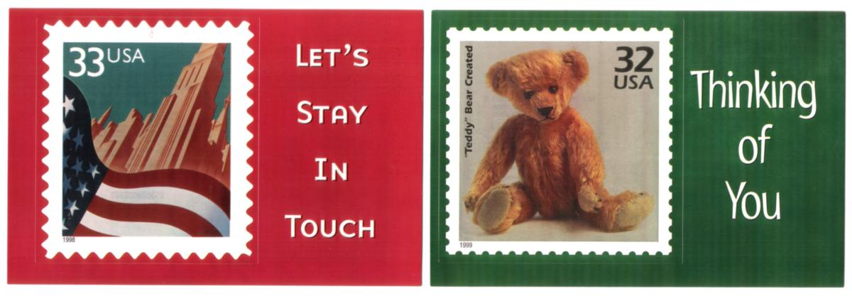 This collectible set features four sealed USPS Post Card Size Phone Card Stickers produced by SmarTalk TeleServices. Each card displays the USPS logo prominently, indicating its connection to the United States Postal Service. The cards are uniformly sized to match standard USPS postcard dimensions, suited for collectible purposes.