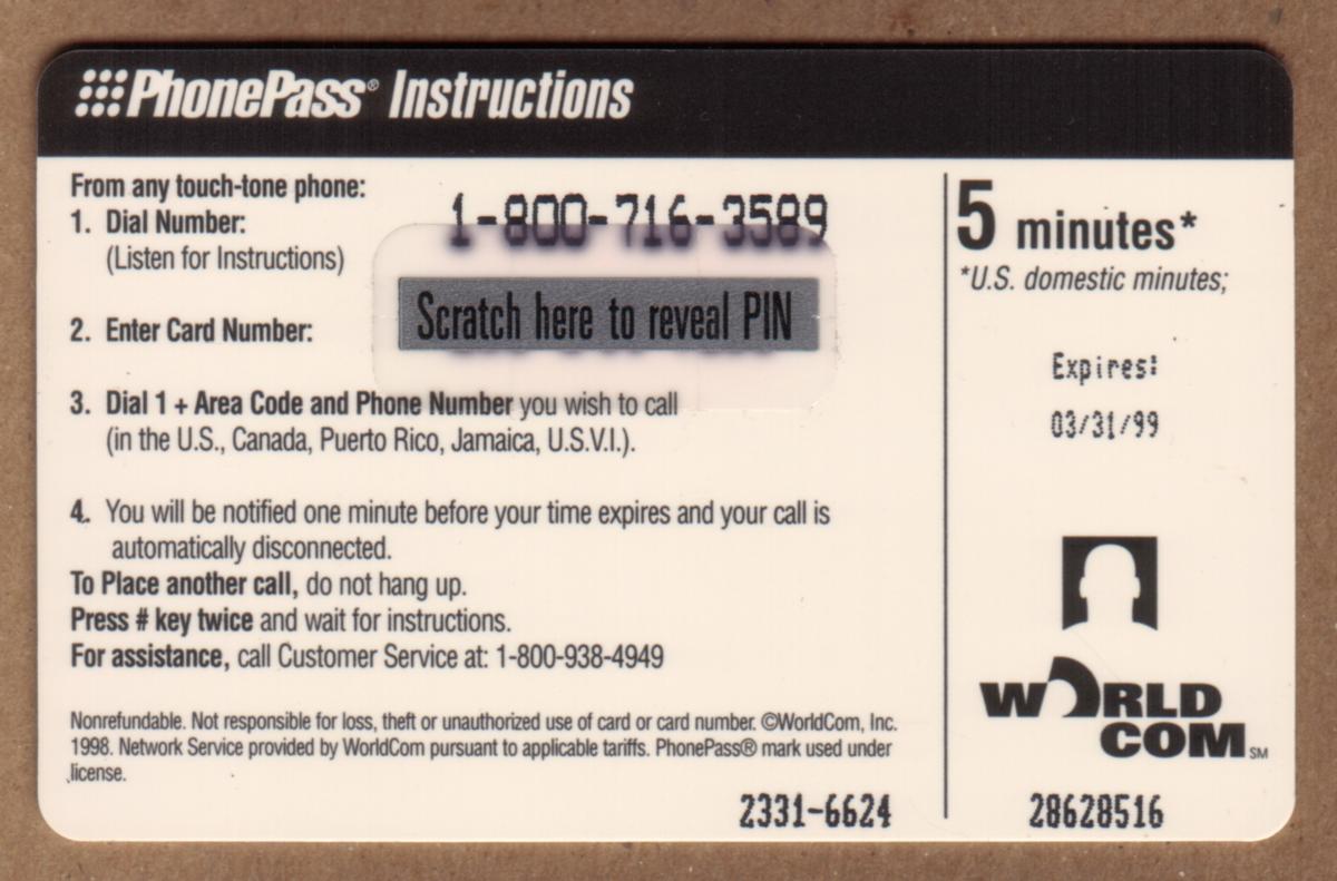 Since we have the world's largest inventory of USA phonecards for collectors, you will not necessarily receive the identical serial/batch/PIN number that we have scanned/pictured.