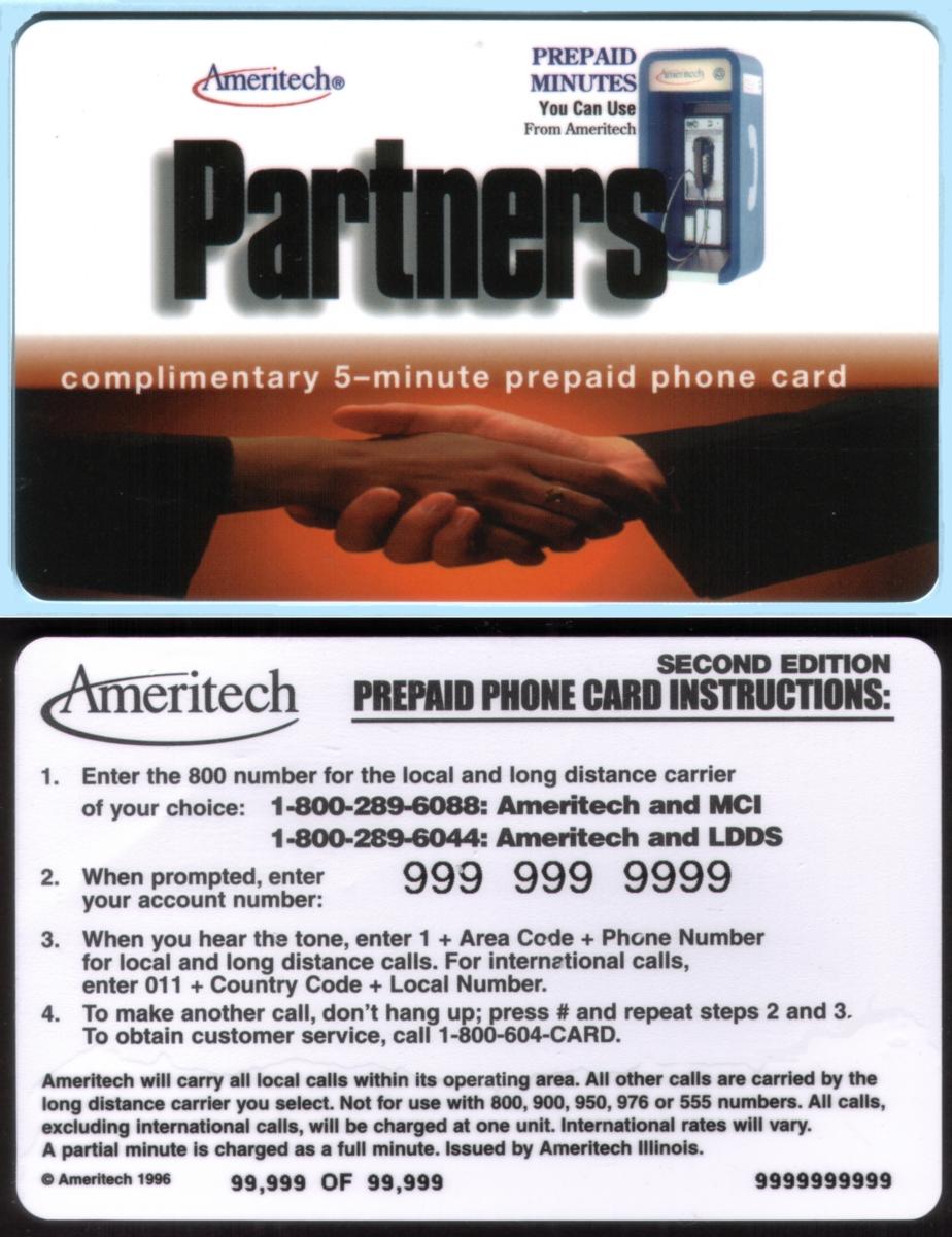 The design emphasizes diversity and business relationships, as represented by the handshake between the two individuals. The card’s layout also incorporates various telephones, reinforcing its association with phone services. The Ameritech branding situates the card within the telecommunications industry, while the overall image projects professionalism and mutual agreement.