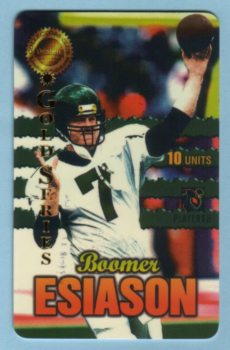 This card serves as a collectible item celebrating Boomer Esiason’s career in professional football. It is part of a limited edition release with a clear numerical sequence, making it a sought-after piece among NFL memorabilia collectors. The card merges sports history and collectible status within a visually appealing format centered entirely on football and Boomer Esiason’s role as a quarterback for Arizona.