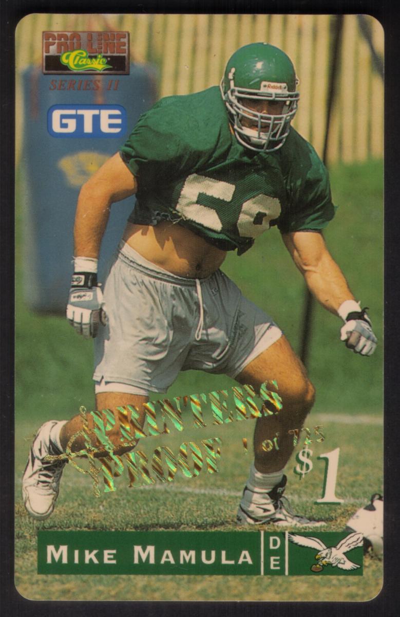 This NFL football collectible specifically honors Mike Mamula’s contributions during his professional career with the Eagles. It is part of a specialized set focusing on football players, showcasing athletic talent within the sport’s defensive positions.