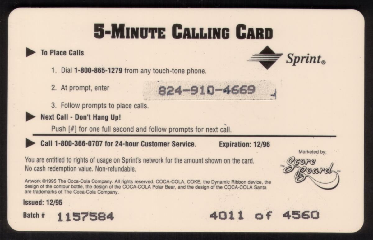 Since we have the world's largest inventory of USA phonecards for collectors, you will not necessarily receive the identical serial/batch/PIN number that we have scanned/pictured.