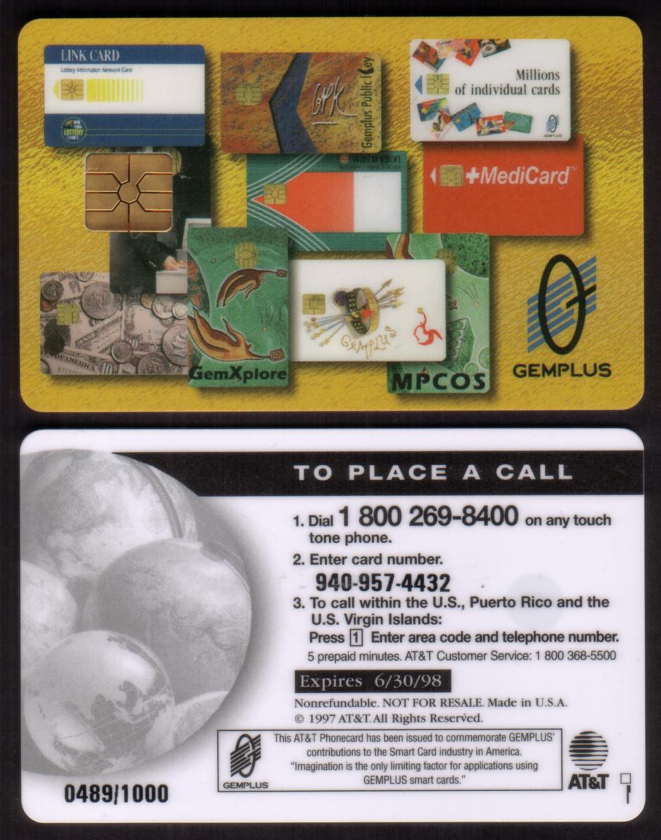 | AT&T Commemorates GemPlus Design - Collage of Chip & Smart Cards USED |