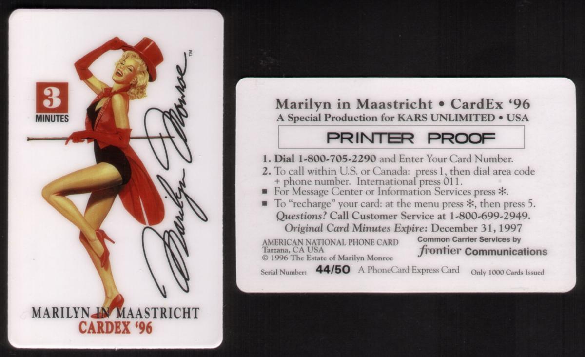 | 3m Marilyn Monroe in Red Top Hat CardEx '96 Printers Proof & Regular |