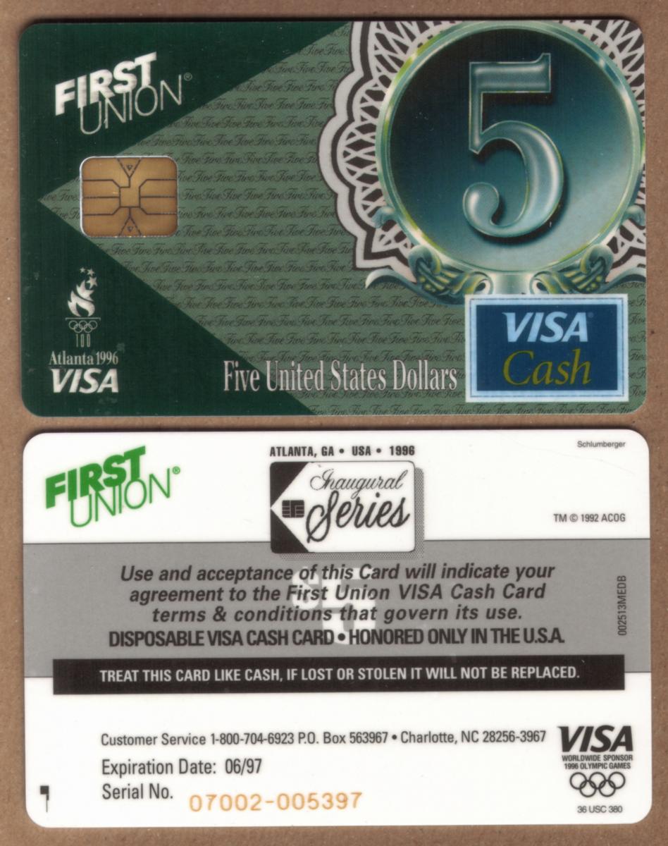 This First Union bankcard is a collectible piece linked to the Treasury Management Association (TMA) event, serving as a physical token commemorating the conference. The card’s chip technology and the bank’s branding emphasize its role in financial services of the mid-1990s. The folder inclusion adds to its status as a collectible item connected to historical corporate events in banking.