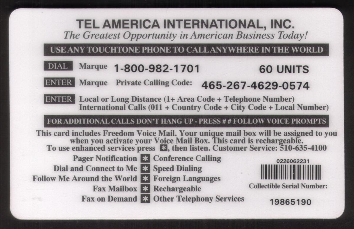 Since we have the world's largest inventory of USA phonecards for collectors, you will not necessarily receive the identical serial/batch/PIN number that we have scanned/pictured.