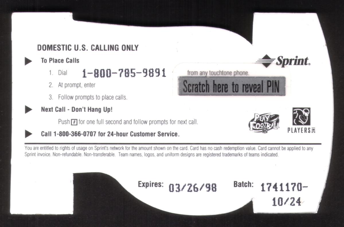Since we have the world's largest inventory of USA phonecards for collectors, you will not necessarily receive the identical serial/batch/PIN number that we have scanned/pictured.