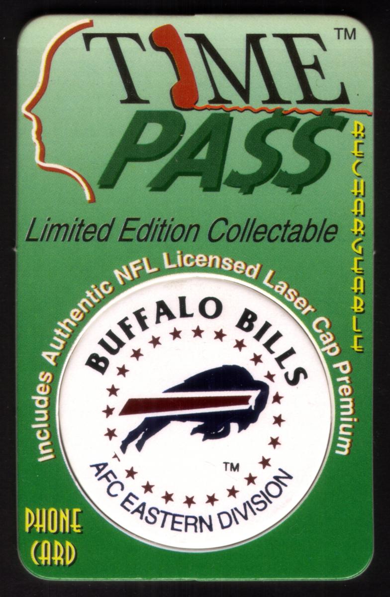 The bottom left corner of the card features the phrase "PHONE CARD" in yellow letters. This limited edition collectible is officially licensed by the NFL and is associated with the Buffalo Bills football team in the AFC Eastern Division. The card is rechargeable and branded by Access Telecom and IGN.