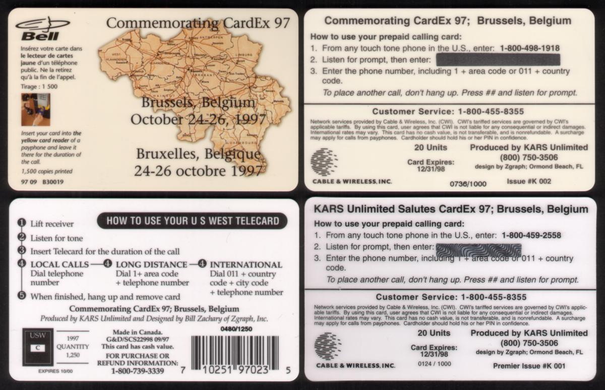| CardEx '97 Belgium Show US West, Bell Canada, Cable & Wireless Set/4 |