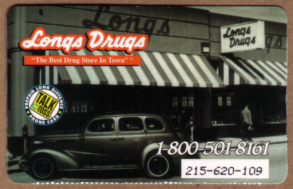 This card is a sealed promotional item associated with Longs Drugs, a well-known chain of drug stores and pharmacies, emphasizing its connection to Piedmont Avenue and the historic significance of the location and automobile featured.