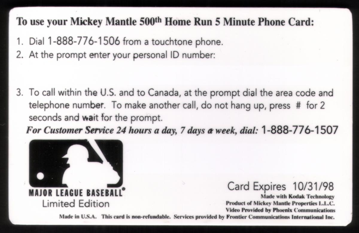 Since we have the world's largest inventory of USA phonecards for collectors, you will not necessarily receive the identical serial/batch/PIN number that we have scanned/pictured.