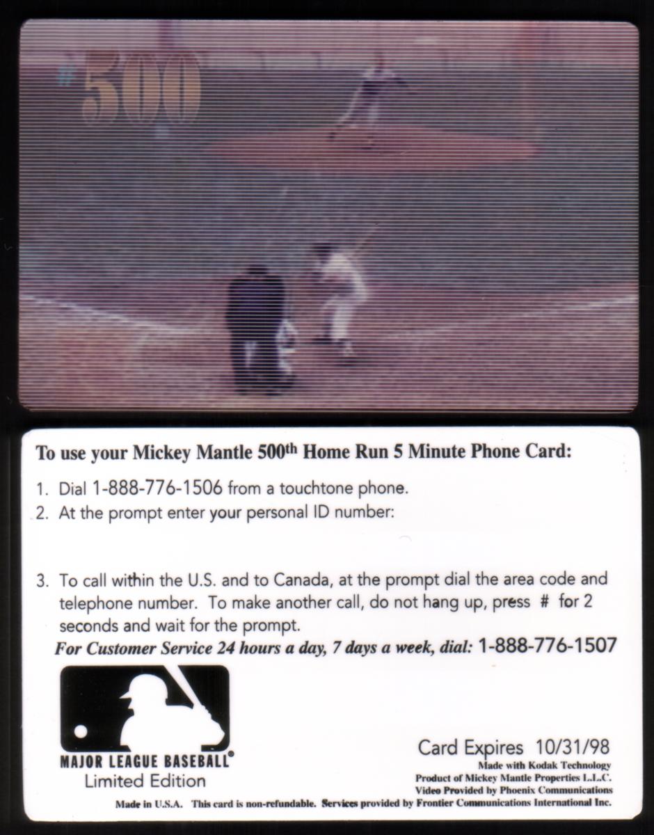 Produced by Frontier Communications, this card celebrates the connection between sports, American history, and baseball memorabilia. The combination of photographic imagery and lenticular motion technology makes it a unique collectible for fans of Major League Baseball and Mickey Mantle alike.