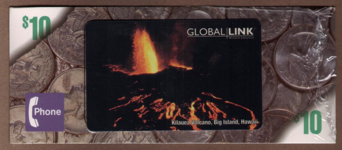 Overall, the card is designed for use as a collectible phone card, combining a striking travel destination image with clear identifying information. It serves as a keepsake highlighting Kilauea Volcano as a notable vacation spot, while also functioning as a prepaid telecommunications card issued by Global Link Telco.