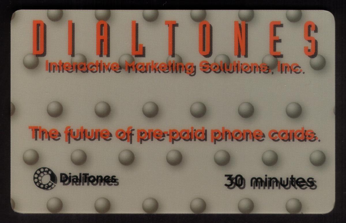 This collectible prepaid phone card is issued by mts/incomm, featuring the DialTones branding with a value of 30 minutes. The card design highlights the theme "The Future of Pre-Paid Phone Cards," emphasizing innovative interactive marketing solutions. The front of the card showcases the mts/incomm logo alongside the DialTones name, reinforcing the brand identity.