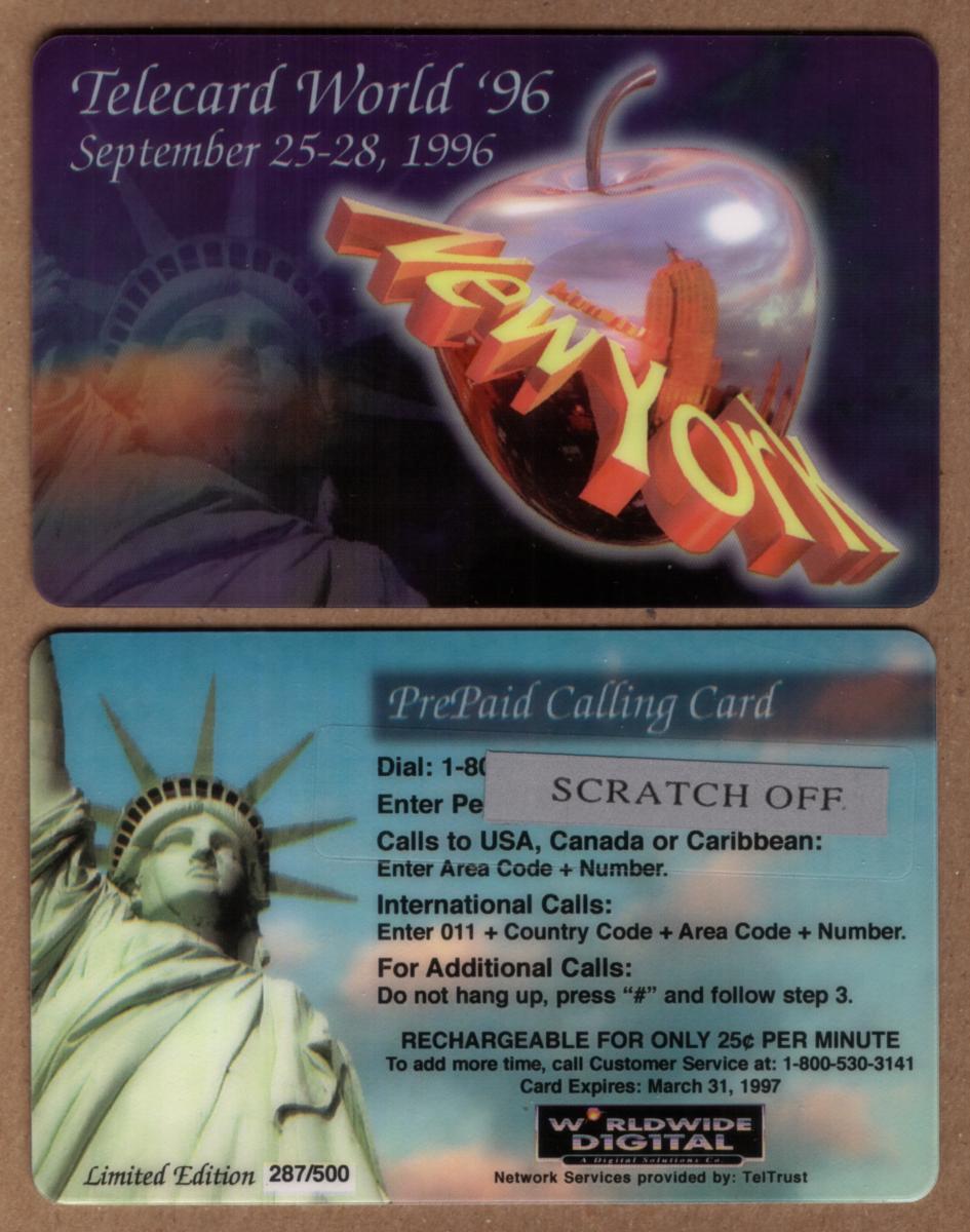 Since we have the world's largest inventory of USA phonecards for collectors, you will not necessarily receive the identical serial/batch/PIN number that we have scanned/pictured.