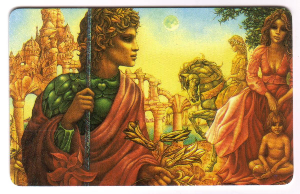 This collectible phone card features fantasy art by Alberto Belasco, prominently showcasing themes from the Atlantis legend. The central artwork depicts Plato’s Atlantis as an advanced island kingdom, emphasizing a mythical and sophisticated civilization. The design incorporates elements of classical and futuristic aesthetics, blending detail with vibrant colors that evoke a legendary and otherworldly atmosphere.