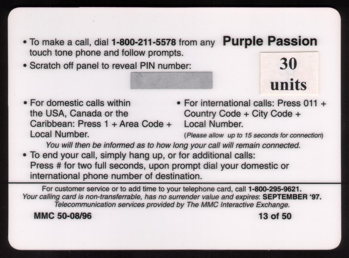 Since we have the world's largest inventory of USA phonecards for collectors, you will not necessarily receive the identical serial/batch/PIN number that we have scanned/pictured.