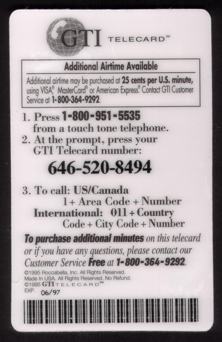 Since we have the world's largest inventory of USA phonecards for collectors, you will not necessarily receive the identical serial/batch/PIN number that we have scanned/pictured.