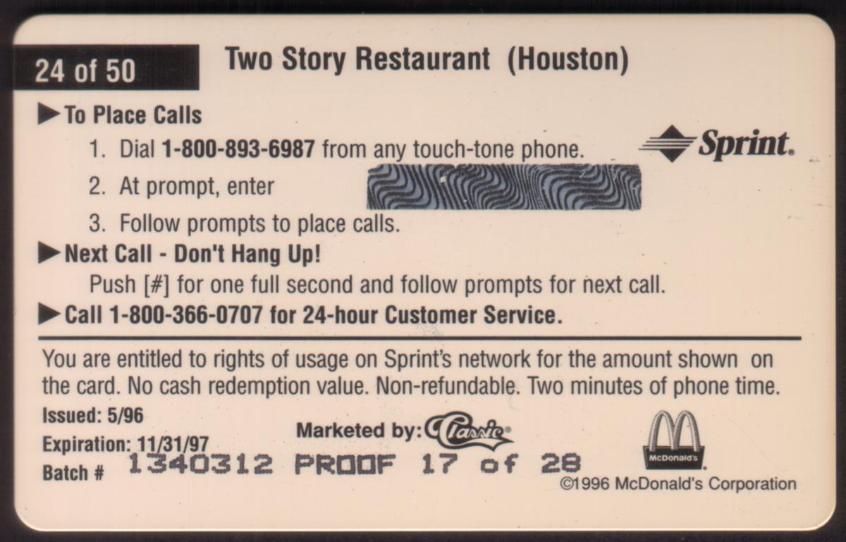 Since we have the world's largest inventory of USA phonecards for collectors, you will not necessarily receive the identical serial/batch/PIN number that we have scanned/pictured.