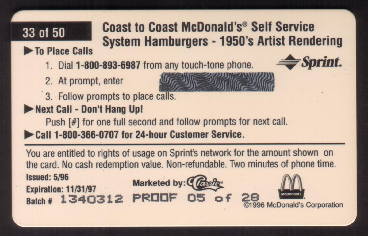 Since we have the world's largest inventory of USA phonecards for collectors, you will not necessarily receive the identical serial/batch/PIN number that we have scanned/pictured.