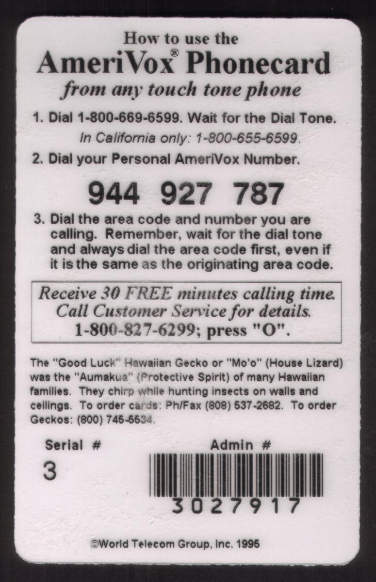 Since we have the world's largest inventory of USA phonecards for collectors, you will not necessarily receive the identical serial/batch/PIN number that we have scanned/pictured.