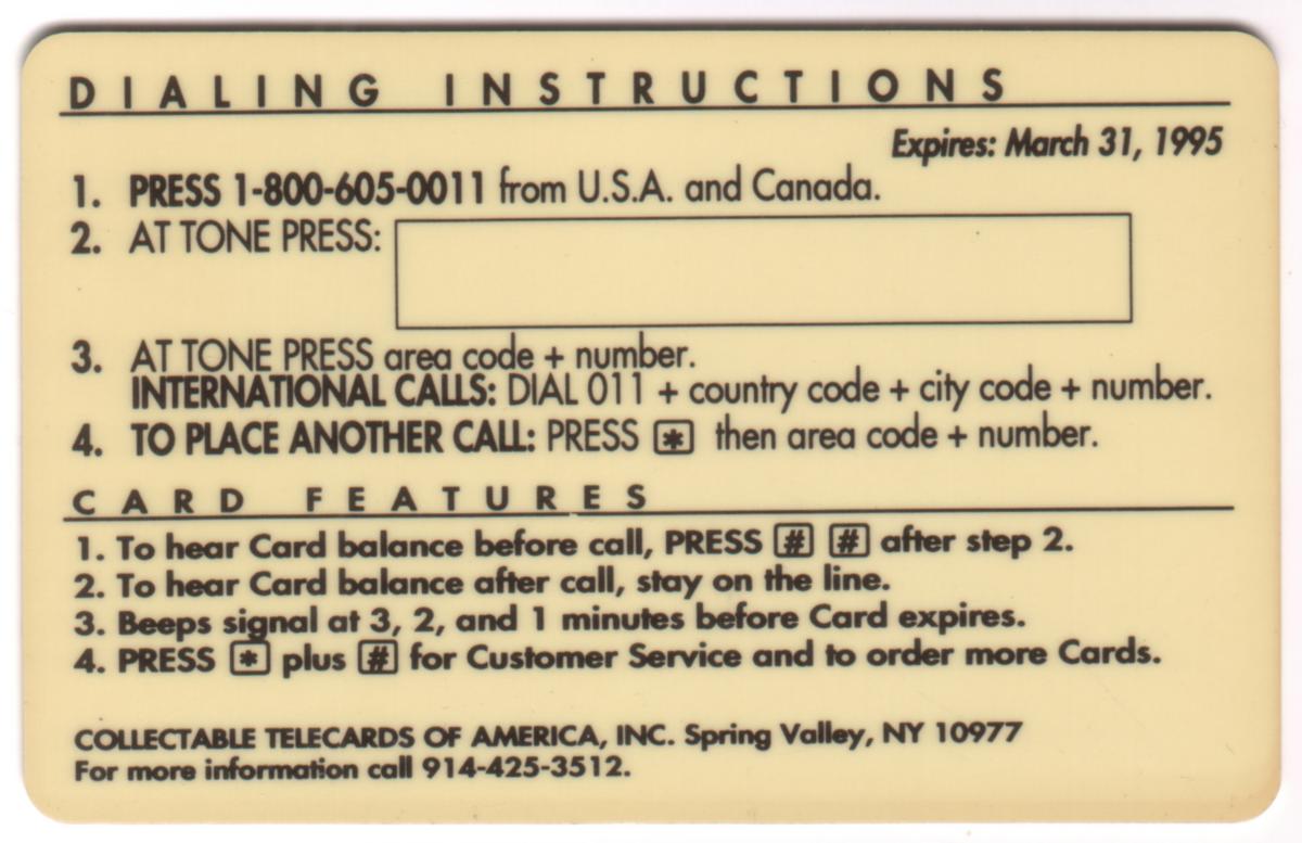 Since we have the world's largest inventory of USA phonecards for collectors, you will not necessarily receive the identical serial/batch/PIN number that we have scanned/pictured.