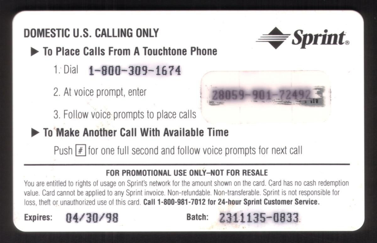 Since we have the world's largest inventory of USA phonecards for collectors, you will not necessarily receive the identical serial/batch/PIN number that we have scanned/pictured.