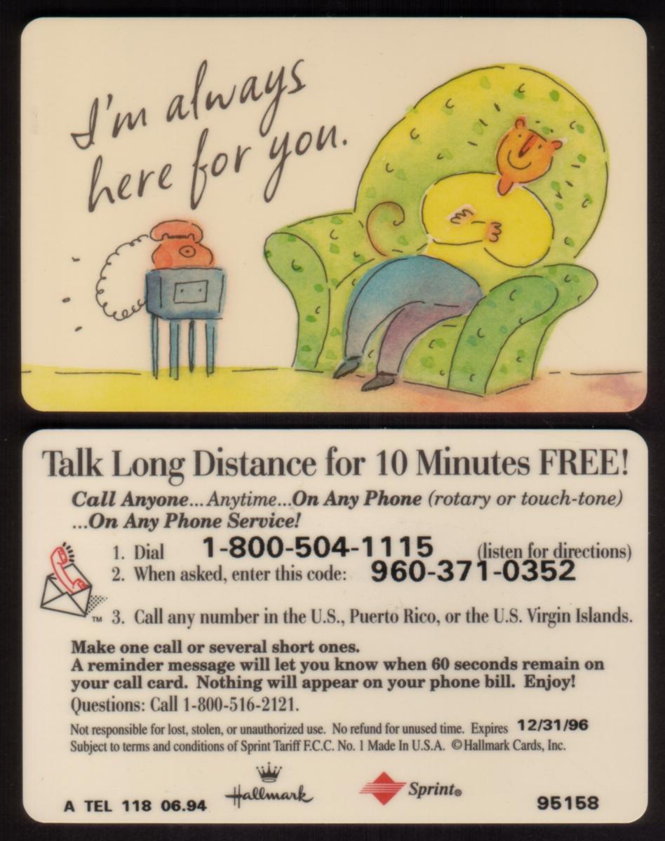This card belongs to Hallmark's collectible phone card offerings and uses imagery connected to friendship and calling, as highlighted by the presence of telephones and phones referenced in the keywords. The design is simple yet expressive, aimed at conveying emotional support and companionship.