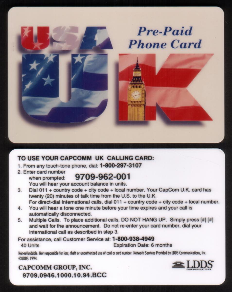 Since we have the world's largest inventory of USA phonecards for collectors, you will not necessarily receive the identical serial/batch/PIN number that we have scanned/pictured.