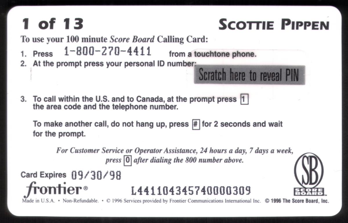 Since we have the world's largest inventory of USA phonecards for collectors, you will not necessarily receive the identical serial/batch/PIN number that we have scanned/pictured.