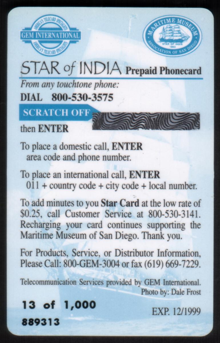 Since we have the world's largest inventory of USA phonecards for collectors, you will not necessarily receive the identical serial/batch/PIN number that we have scanned/pictured.