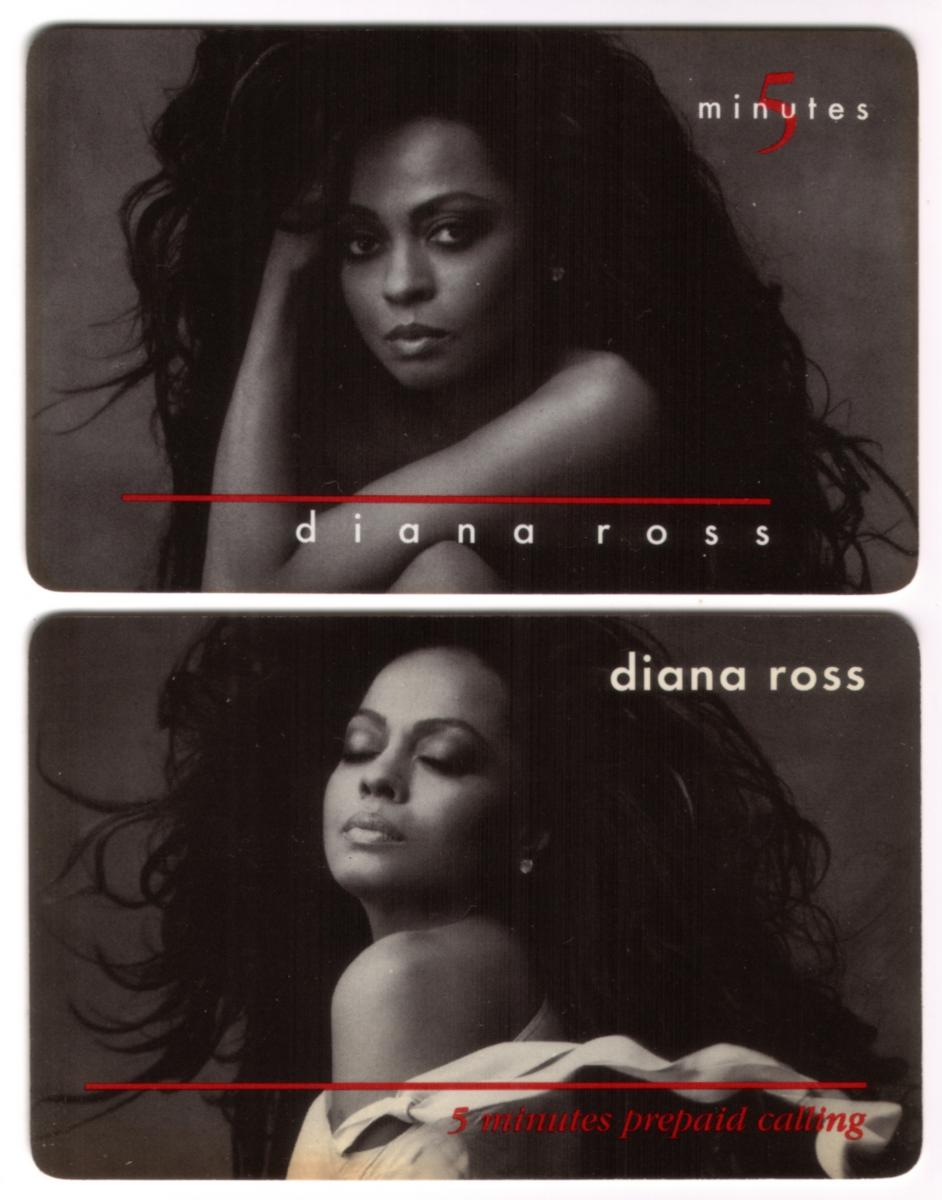 The card’s design includes the denomination of 5 million and uses the OmniTel branding, indicating its origin as a collectible phone card. The overall aesthetic of the card is monochromatic, emphasizing the iconic nature of Diana Ross’s image and her significance in music history and popular culture.
