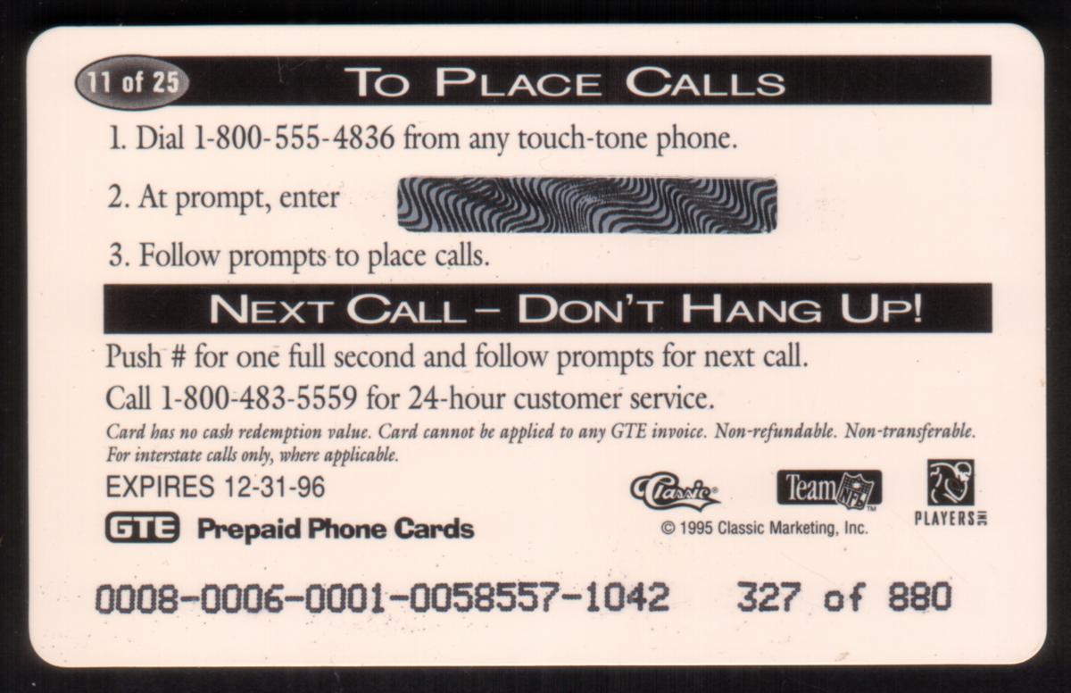Since we have the world's largest inventory of USA phonecards for collectors, you will not necessarily receive the identical serial/batch/PIN number that we have scanned/pictured.