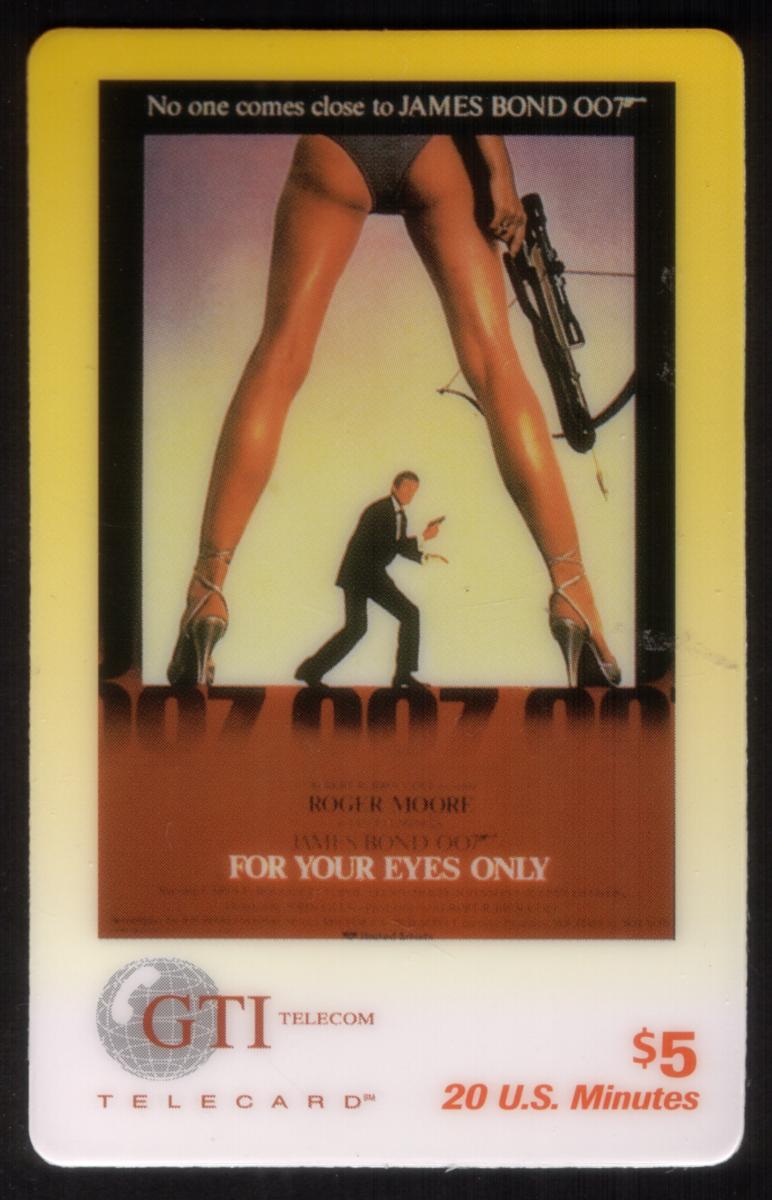 Each card’s design faithfully reproduces the original movie poster's text and imagery, containing names of stars, producers, and iconic James Bond branding such as “007,” guns integrated into the numbering, and credits to Ian Fleming. This set represents a comprehensive and collectible tribute to James Bond’s cinematic legacy through authentic telecard memorabilia with official GTI Telecom markings and telecommunication usage value.