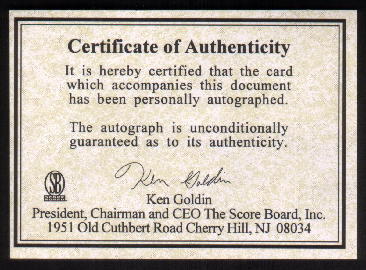 Manon Rheaume’s autograph is printed in white across the lower half of the card, contrasting clearly against the dark area of her uniform. The card states an expiration date of 12/31/96 and a value of $25 for the Sprint phone service. This collectible phone card is accompanied by a Certificate of Authenticity (COA) issued by The Score Board Inc.