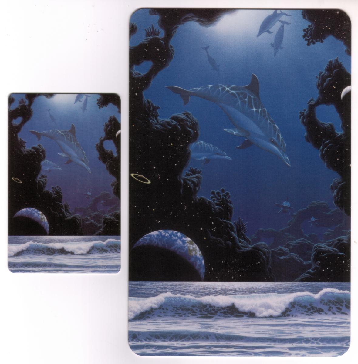 These collectible cards are issued by Mercury Marketing and focus on the beauty and vitality of sea life, specifically dolphins. The clear underwater photographs or artwork celebrate the natural habitat of these mammals, with emphasis on water clarity and natural lighting. The overall presentation appeals to collectors who appreciate marine biology and artistic representations of wildlife.