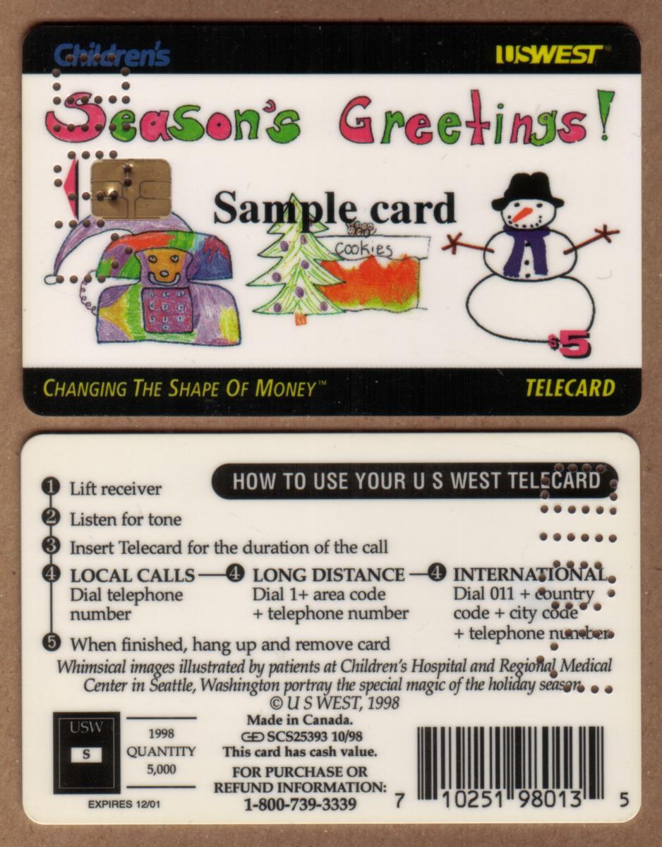 $5. Season's Greetings 1998 Children's Phone, Tree, Snowman SAMPLE