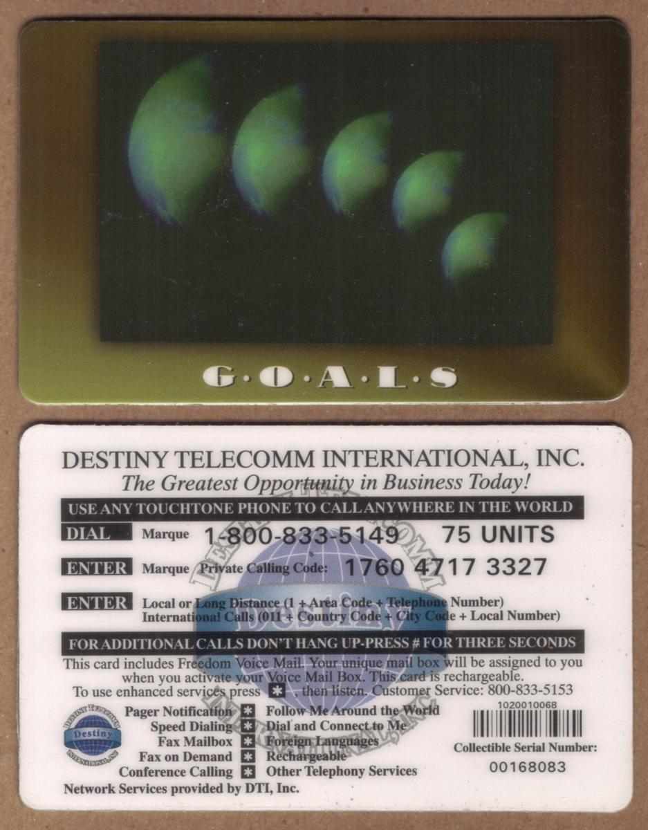 Additional text includes the phone number “32722” near the top left, which is likely related to the dialing or service details associated with this card. The clean, high-contrast visuals and purposeful design make this phone card a distinctive collectible from the Motivational Series II by Destiny Telecomm.