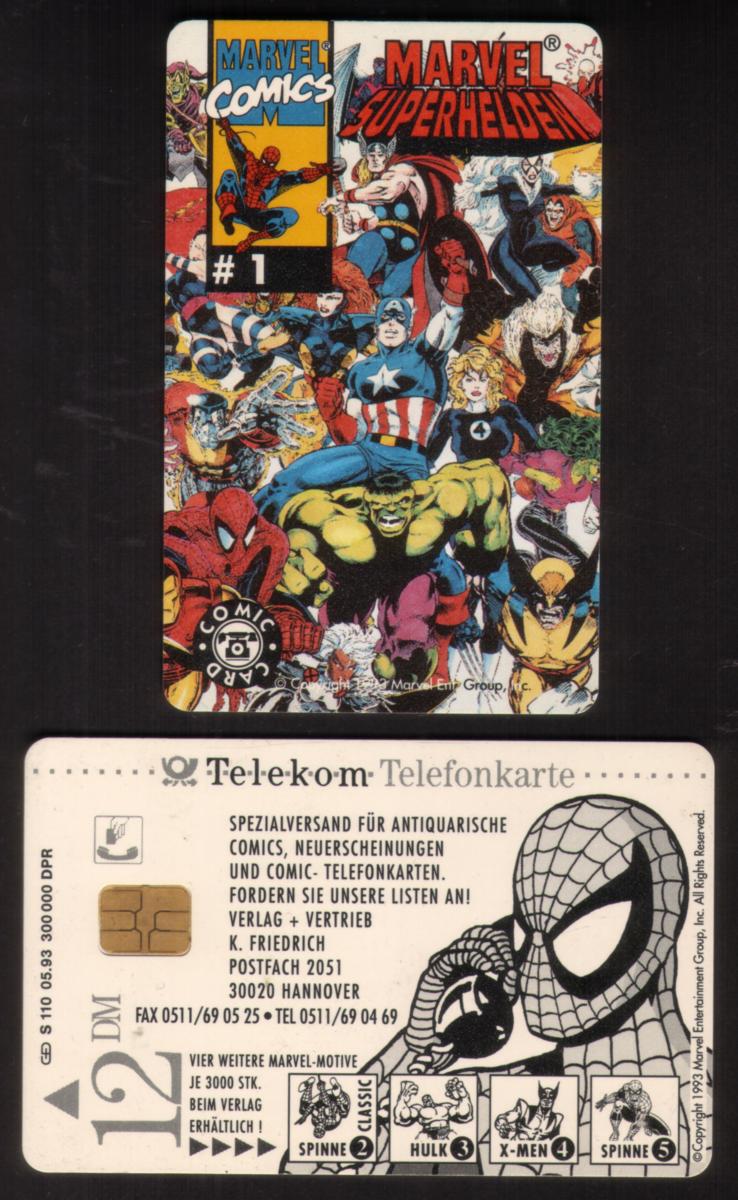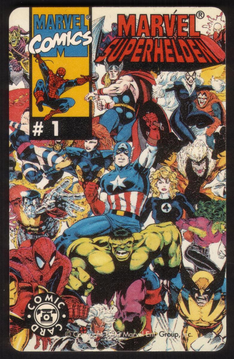 This collectible card was produced in Germany by G&D (Giesecke & Devrient) and is clearly a tribute to Marvel's superhero lineup. It showcases a range of characters spanning different Marvel teams and storylines, making it highly appealing for collectors interested in Marvel superhero memorabilia. The card includes the official Marvel copyright notice at the bottom, denoting its authenticity and licensing by Marvel Entertainment Group, Inc.