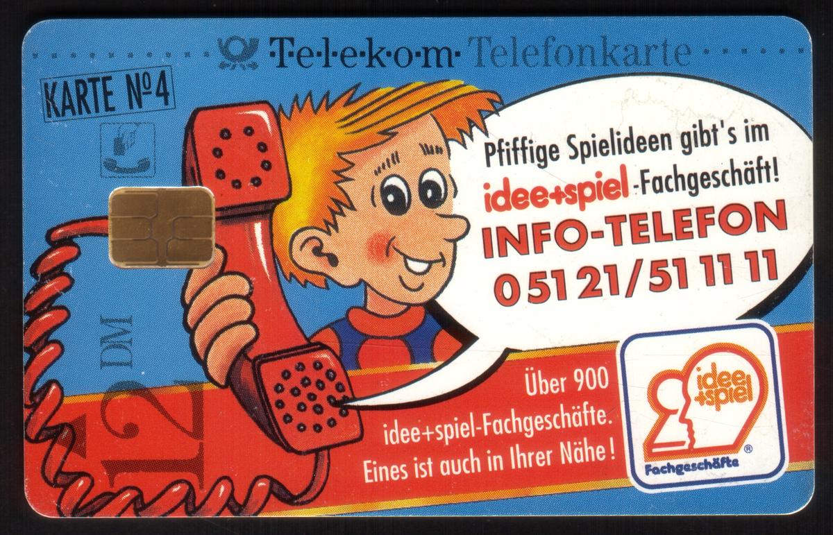 The card is branded with "idee+spiel EXCLUSIV" in bold yellow letters at the top left, indicating it was a special exclusive set. The overall design has a colorful background blending shades of purple and blue behind the figures, highlighting the wedding theme. The card’s denomination is marked as 12dm, and it showcases two old-fashioned telephones beside the characters, reinforcing its use as a phone card.