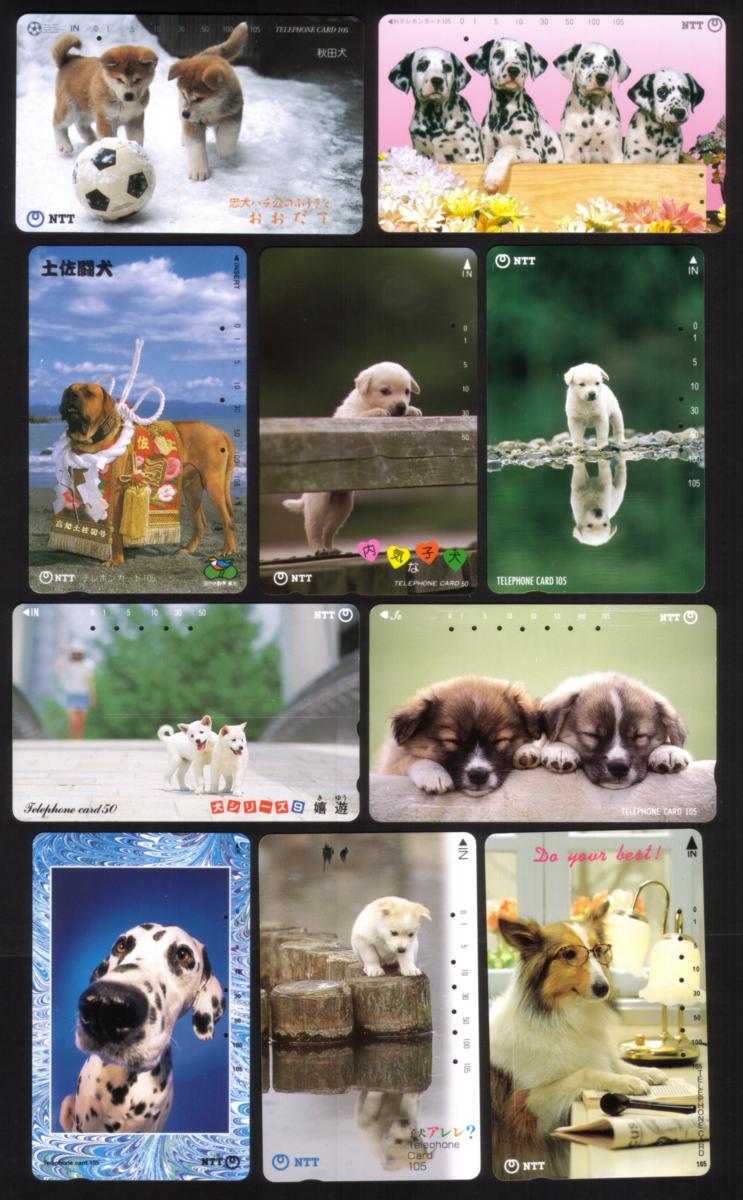 This collectible phone card from Japan features an image of dogs and puppies, highlighting various breeds and animals in a charming presentation. The card is part of a set titled "50 Different Dogs & Puppies Phonecards from Japan," emphasizing its inclusion in a larger collection focused on canines as pets and animals.
