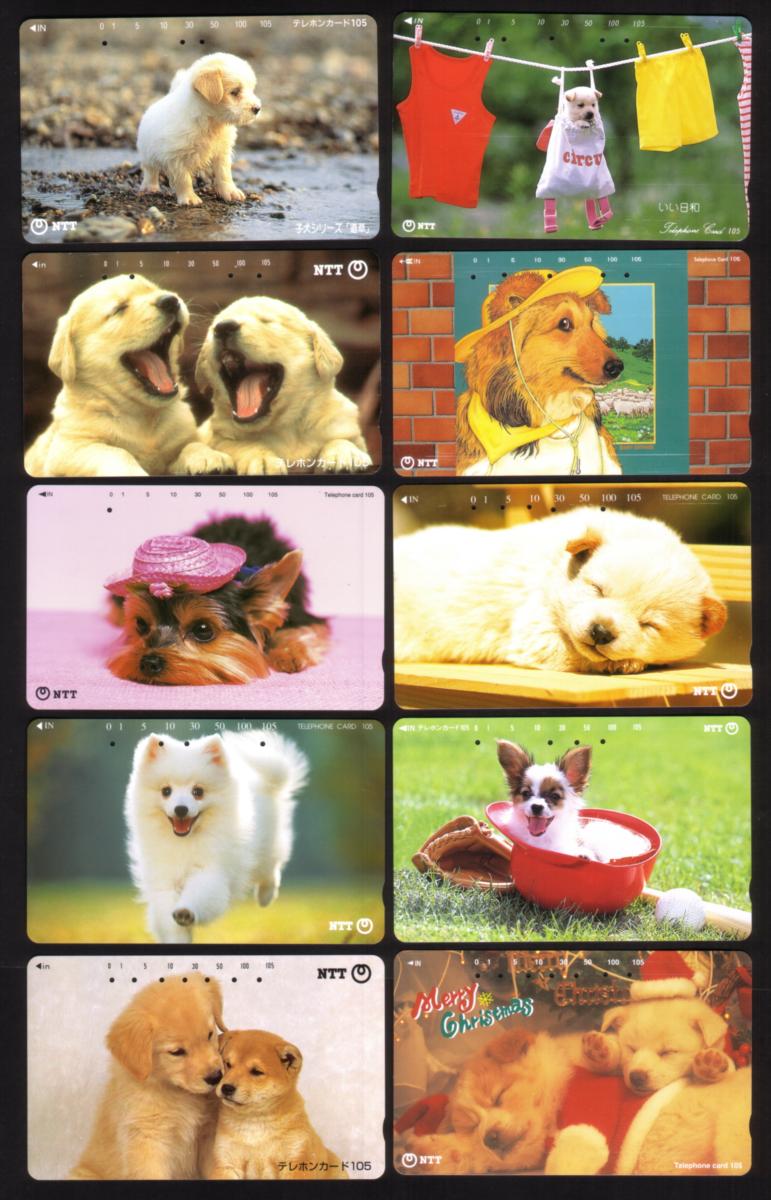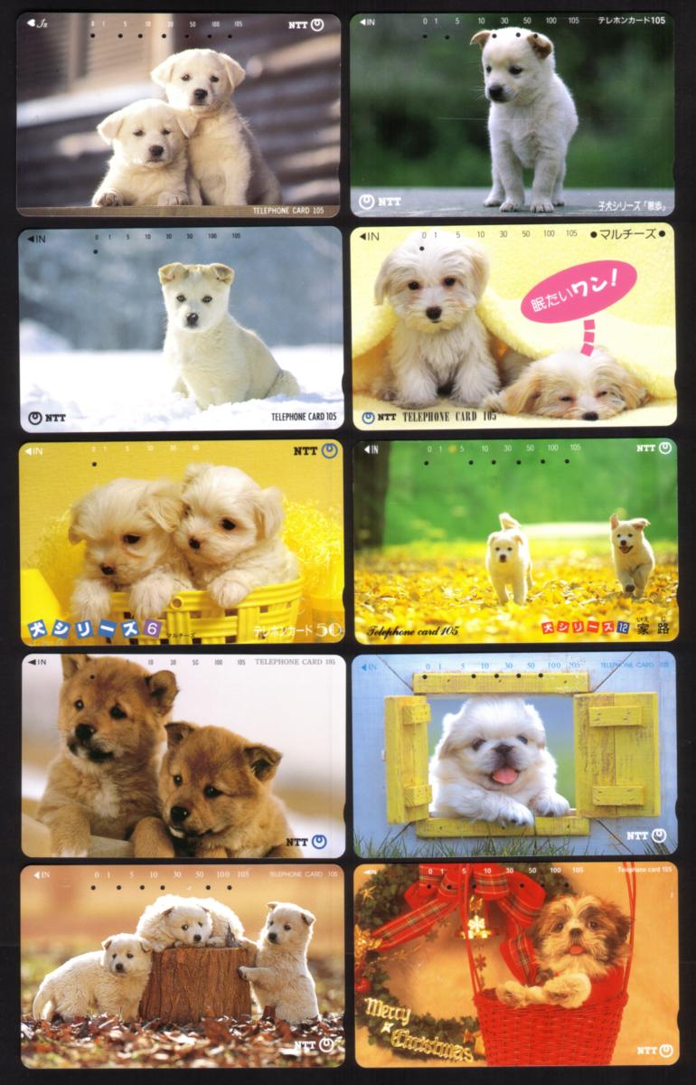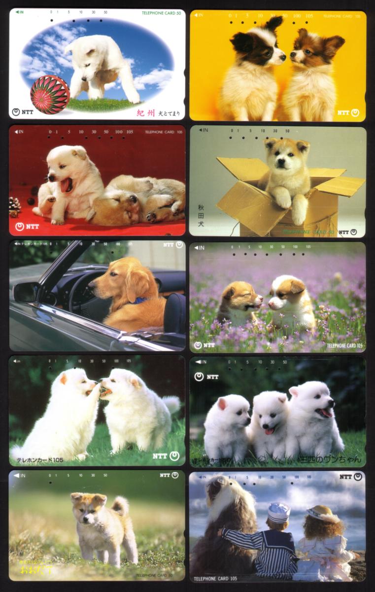 Overall, this Japanese phone card from the dog and puppy collection is a collectible item showcasing pets and animals, making it valuable for collectors interested in both canine imagery and Japanese phone cards. The card is marked as USED, indicating it has been previously circulated or activated.