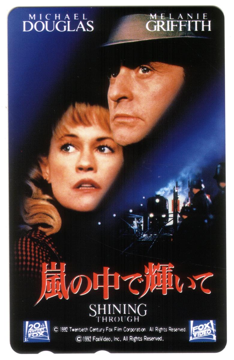 This collectible phone card from Japan features an image promoting the movie *Shining Through*, starring Melanie Griffith and Michael Douglas. The front of the card presents clear photographic artwork focused on these two actors, highlighting their connection to the film. Melanie Griffith’s name is clearly displayed, emphasizing her starring role. Michael Douglas is also mentioned, confirming his involvement in the movie. The card is marked with a value of 50u, indicating its phone card usage amount.