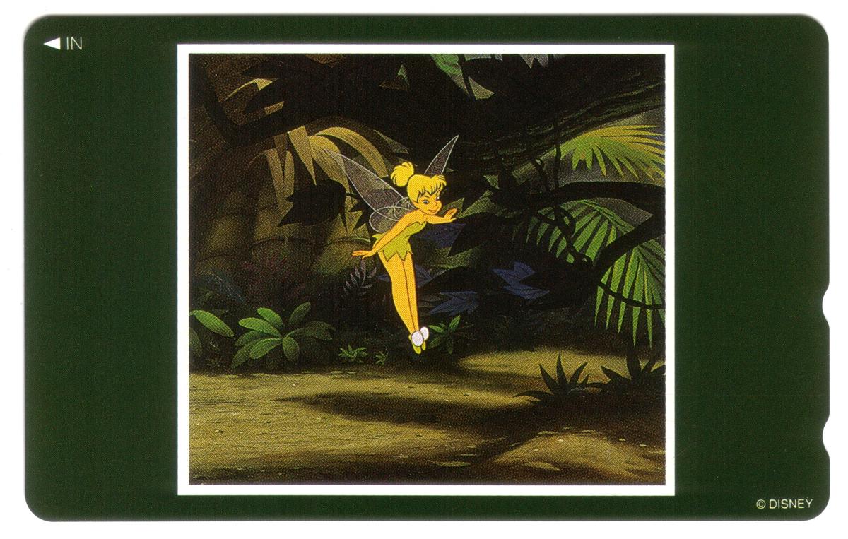 This item is a collectible phone card themed around Disney’s Peter Pan universe, specifically focusing on Tinker Bell, one of the most recognizable characters from the franchise. It combines both artistic character representation and natural elements to create an engaging design.